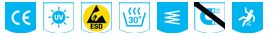 Cubierta EVA expandido, Suela EVA/Caucho Normativa: EN ISO 20347:2012 - ASTM F2892:2018 Zueco esterilizable químicamente y por rayos UV, Descarga electroestática (ESD), Solución impermeable, Lavable a 30*C, Peso 220grs. Antideslizante, Esterilizable. Tallas: 34 - 47