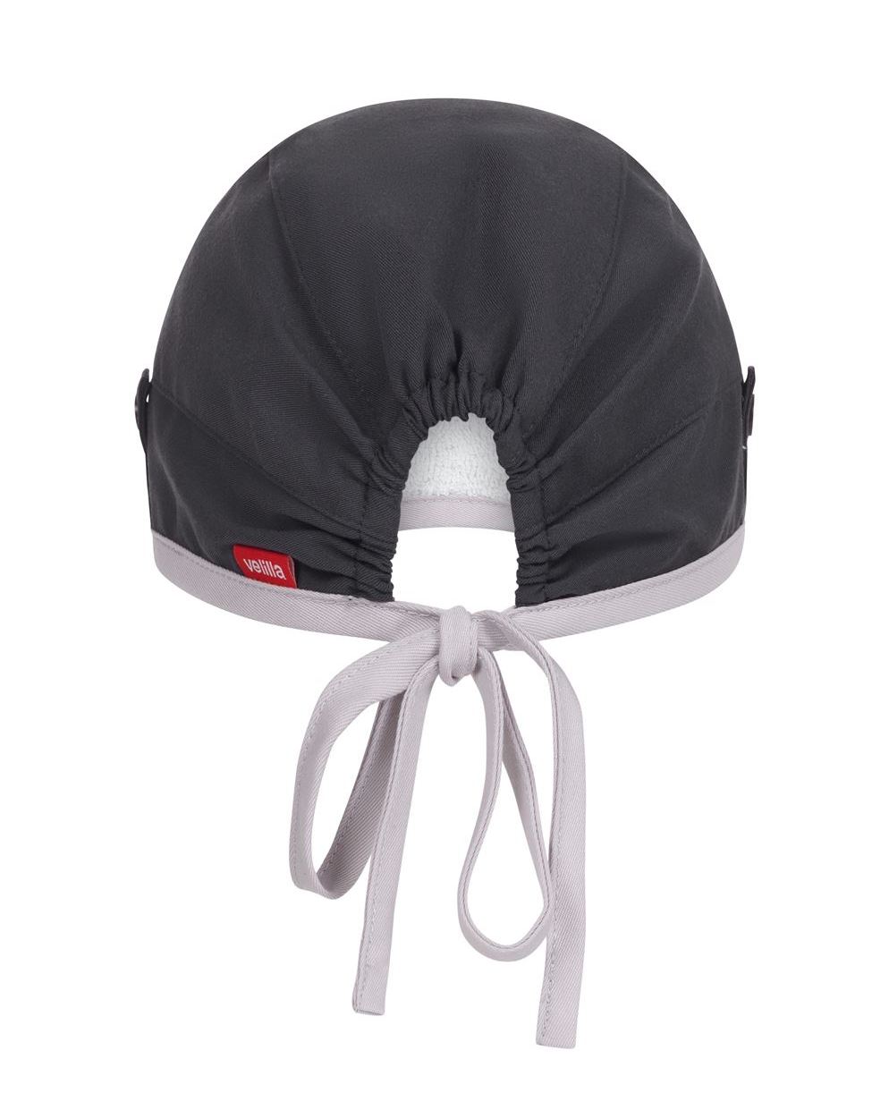 73% poliéster reciclado GRS - 21% Rayón - 6% Elastano 180 grs./m² Gorro Sanitario PURE STRETCH con trabillas laterales para mascarilla, Cinta de toalla en frontal interior, ejido con tratamiento anti bacteriano y repelente a líquidos, Tacto melocotón, Tejido lavable a 60*C, Parte posterior elástica, Ajustable con cintas a contraste.