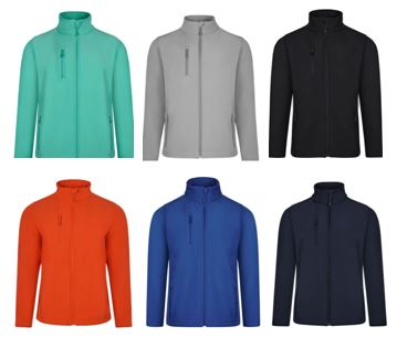 Sofhtshell - 94% Poliéster - 6% Elastano. Interior polar 100% Poliéster 280 grs./m² Chaqueta Softshell Unisex, repelente al agua, Cierre con cremallera con protección en barbilla, Forro interior con tejido polar suave, 3 bolsillos con cremallera a tono, Parte trasera más larga.